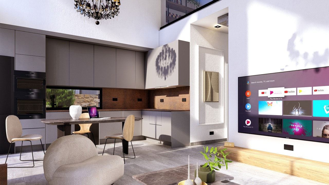 The standard equipment includes a fully fitted kitchen, sanitary ware, and built-in wardrobes. You may choose the interior design and furniture yourself or use the services of our professional designer.