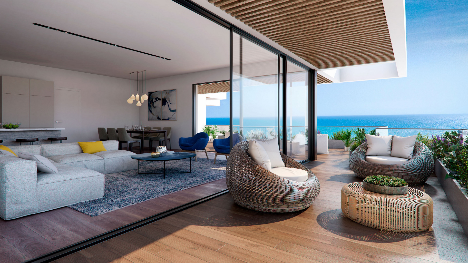 For when you want privacy, the floor-to-ceiling glass doors and windows of your apartment lead to the terrace, where you can enjoy a glass of wine while you watch the sunset over the Mediterranean sea.