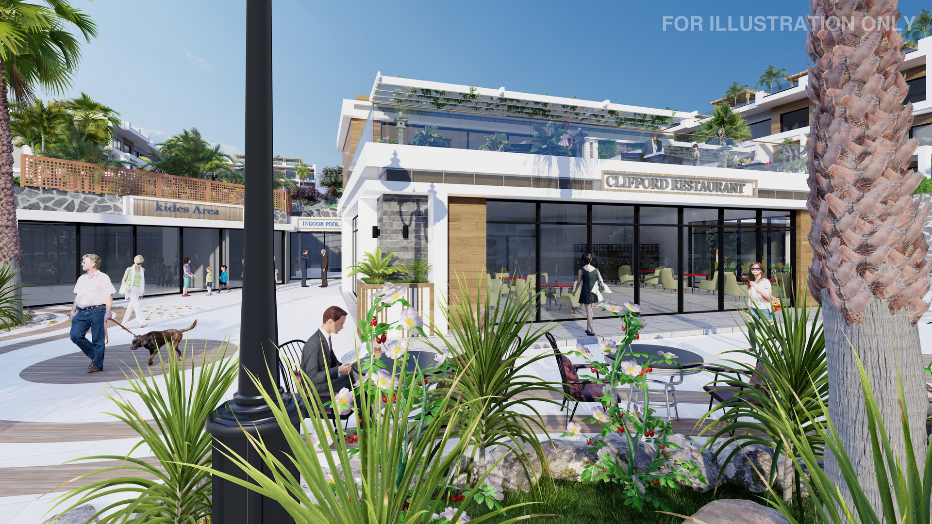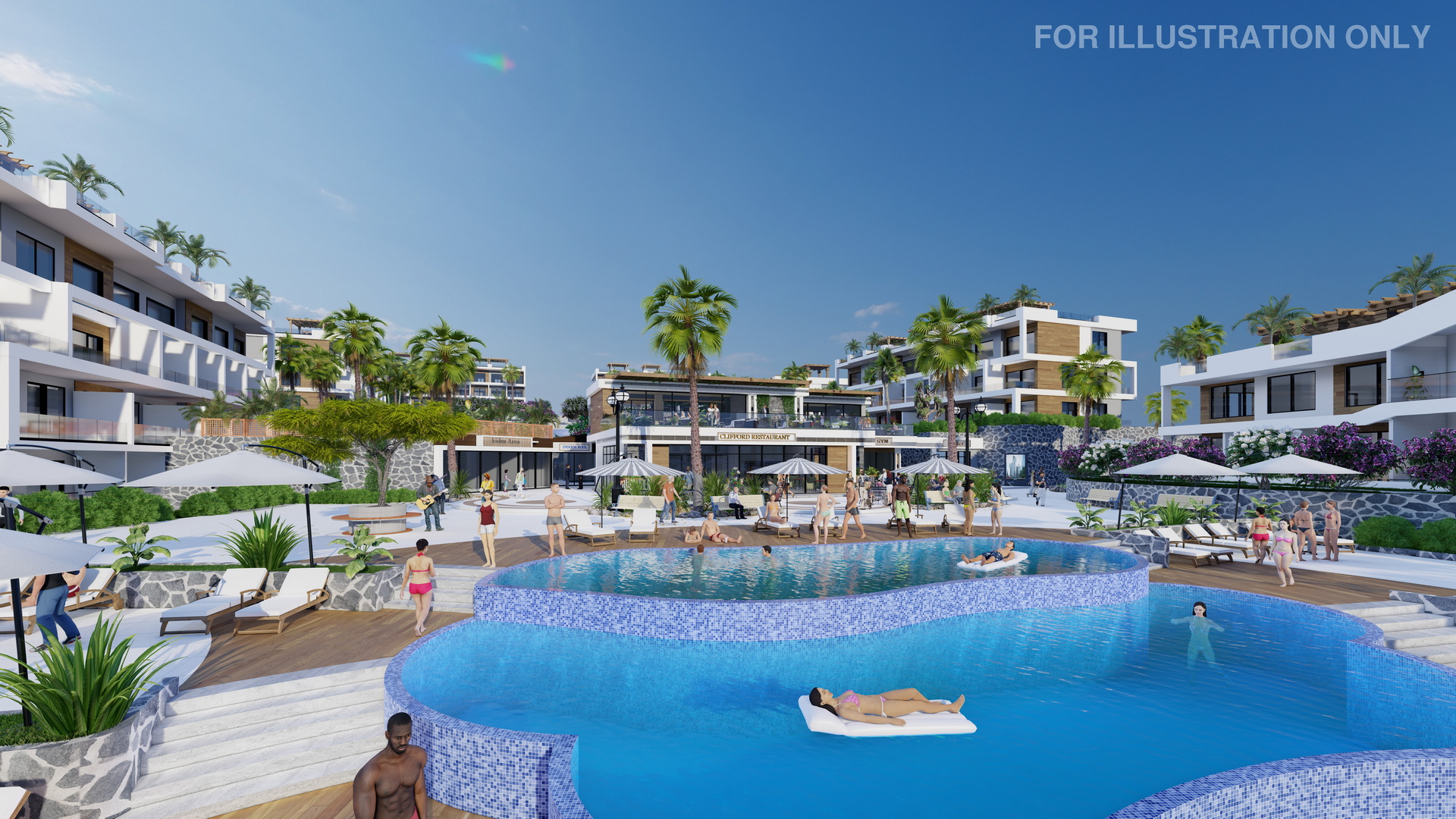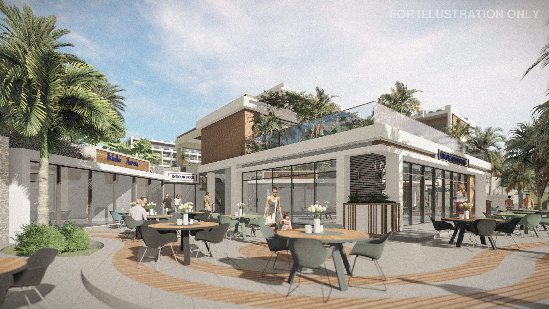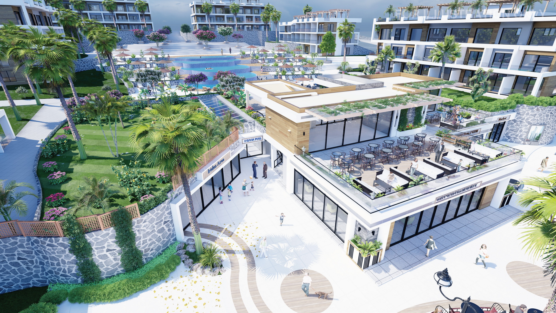Discover an array of amenities, including a well-equipped gym and outdoor sports ground, inviting indoor and outdoor pools, restaurants with exquisite cuisines from around the world, and supermarkets with a wide range of products.