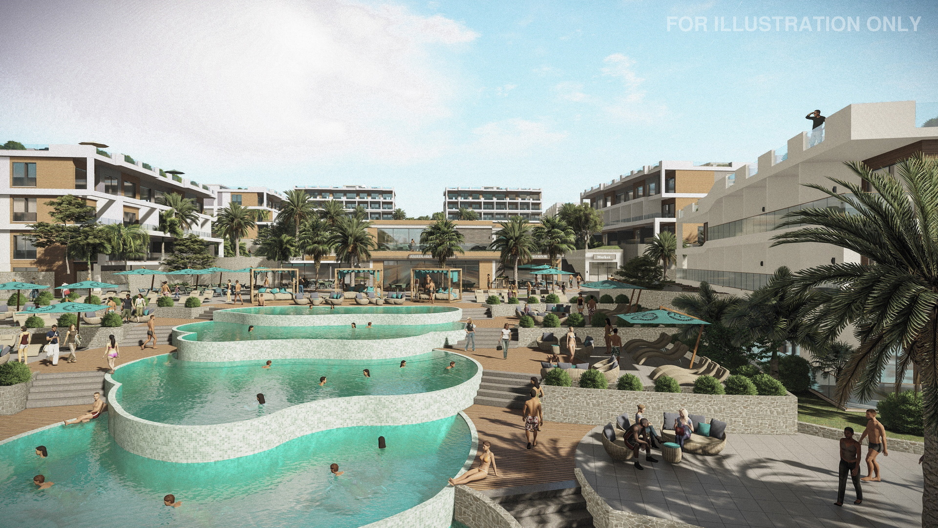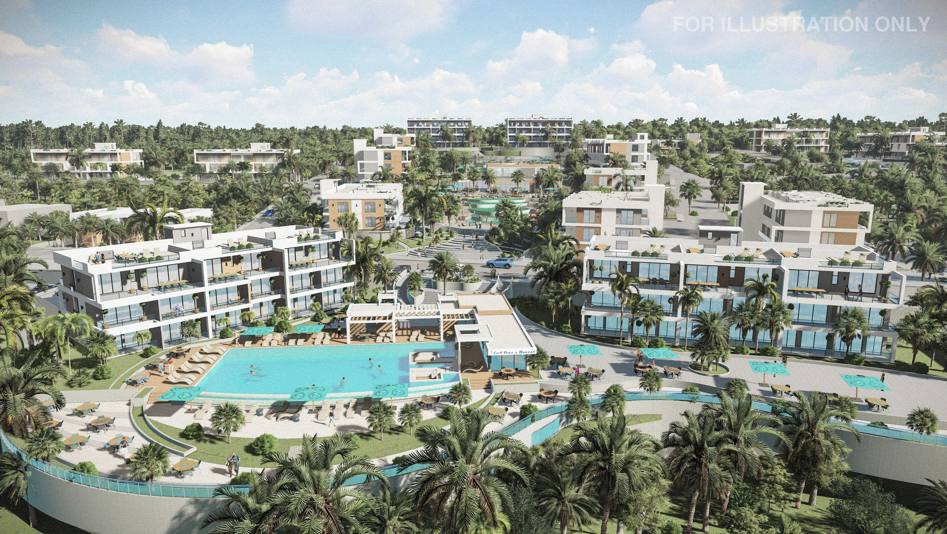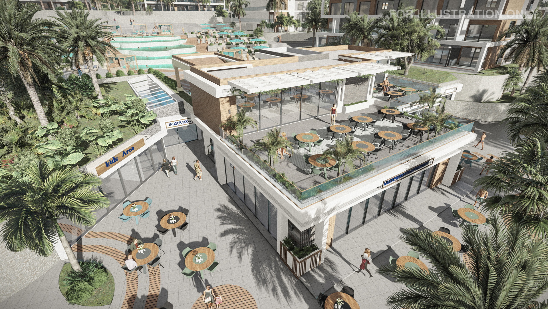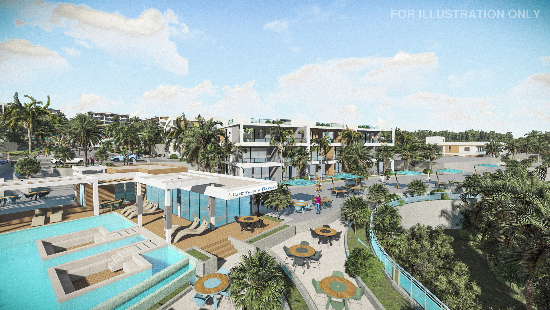 Discover an array of amenities, including a well-equipped gym and outdoor sports ground, inviting indoor and outdoor pools, restaurants with exquisite cuisines from around the world, and supermarkets with a wide range of products.