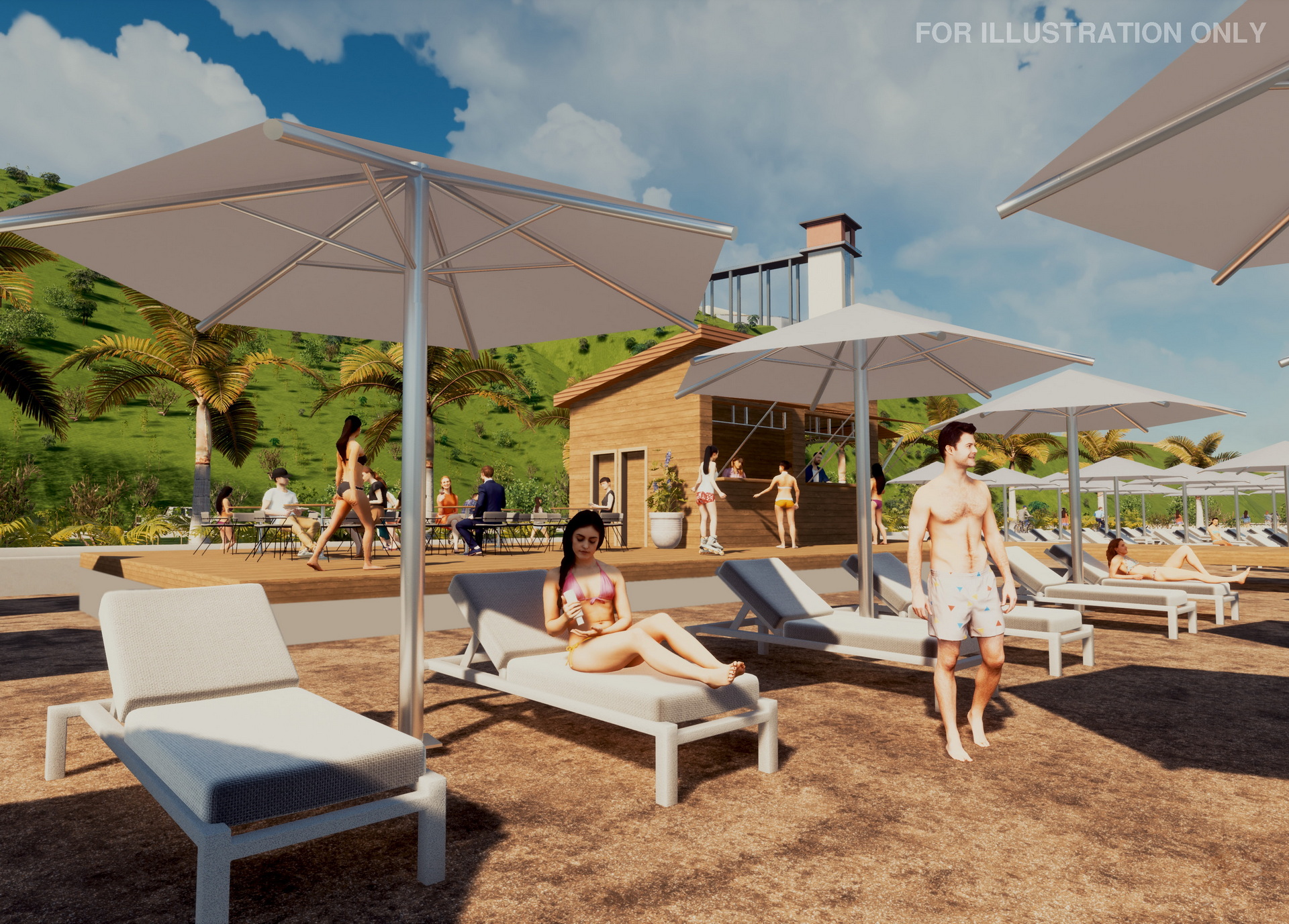 Unwind at the beach bar with your favorite drinks or let the kids have fun in the safe and vibrant playgrounds and game room.