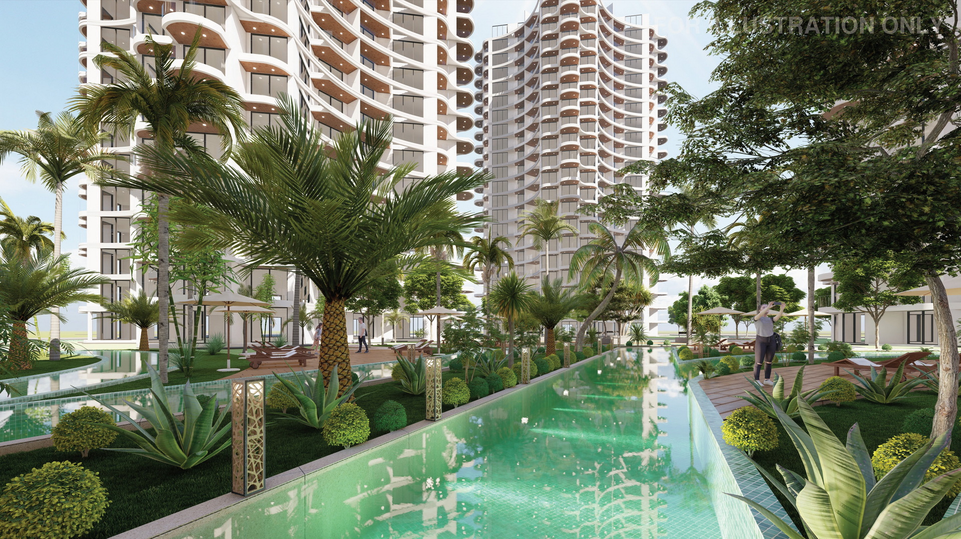 Comprising seven awe-inspiring high-rise buildings, each with 24 floors, the complex offers breathtaking views of the mesmerizing Mediterranean Sea, drawing inspiration from the captivating allure of Dubai's architectural marvels.