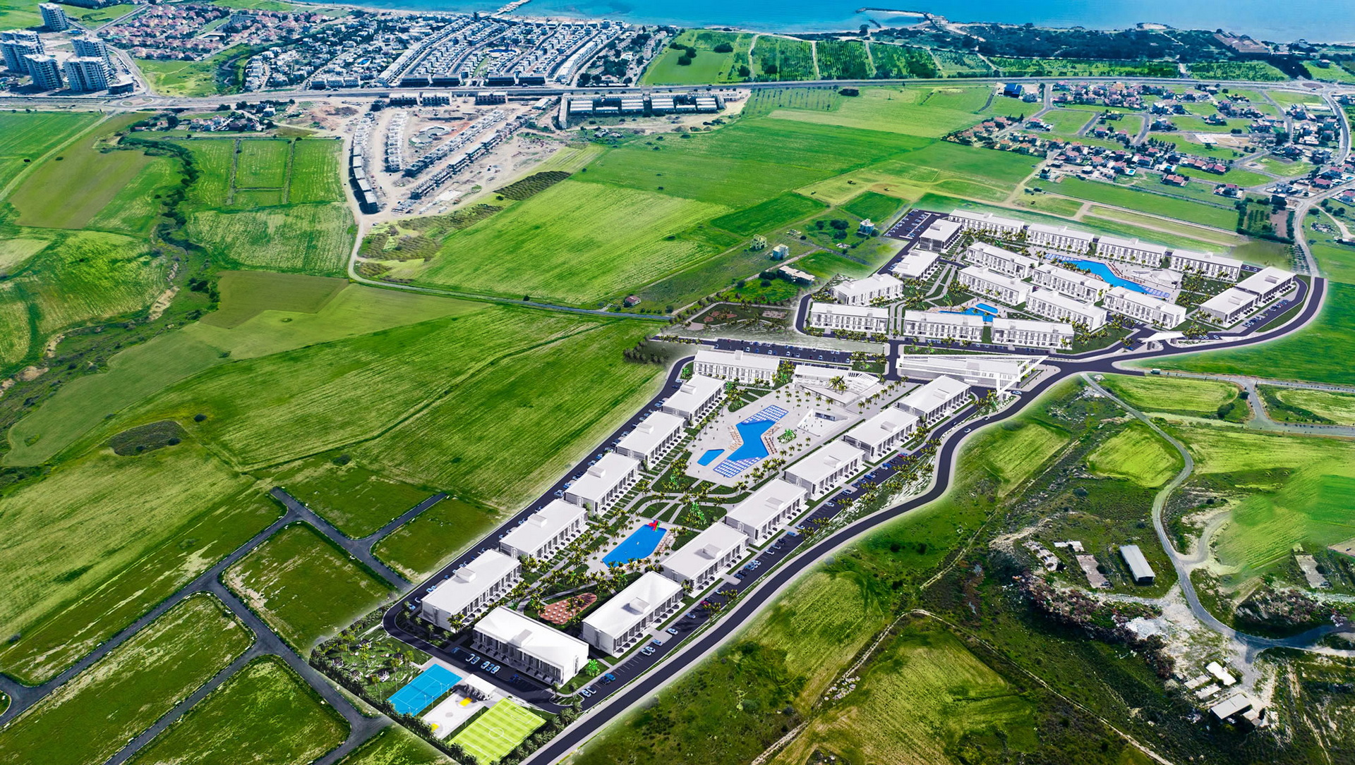 Conveniently located just 600 meters from the Mediterranean Sea coastline, Courtyard Platinum provides easy access to beautiful beaches. The project also boasts a strategic location in terms of transportation accessibility - only 50 km from Ercan Airport and 80 km from Larnaca Airport.