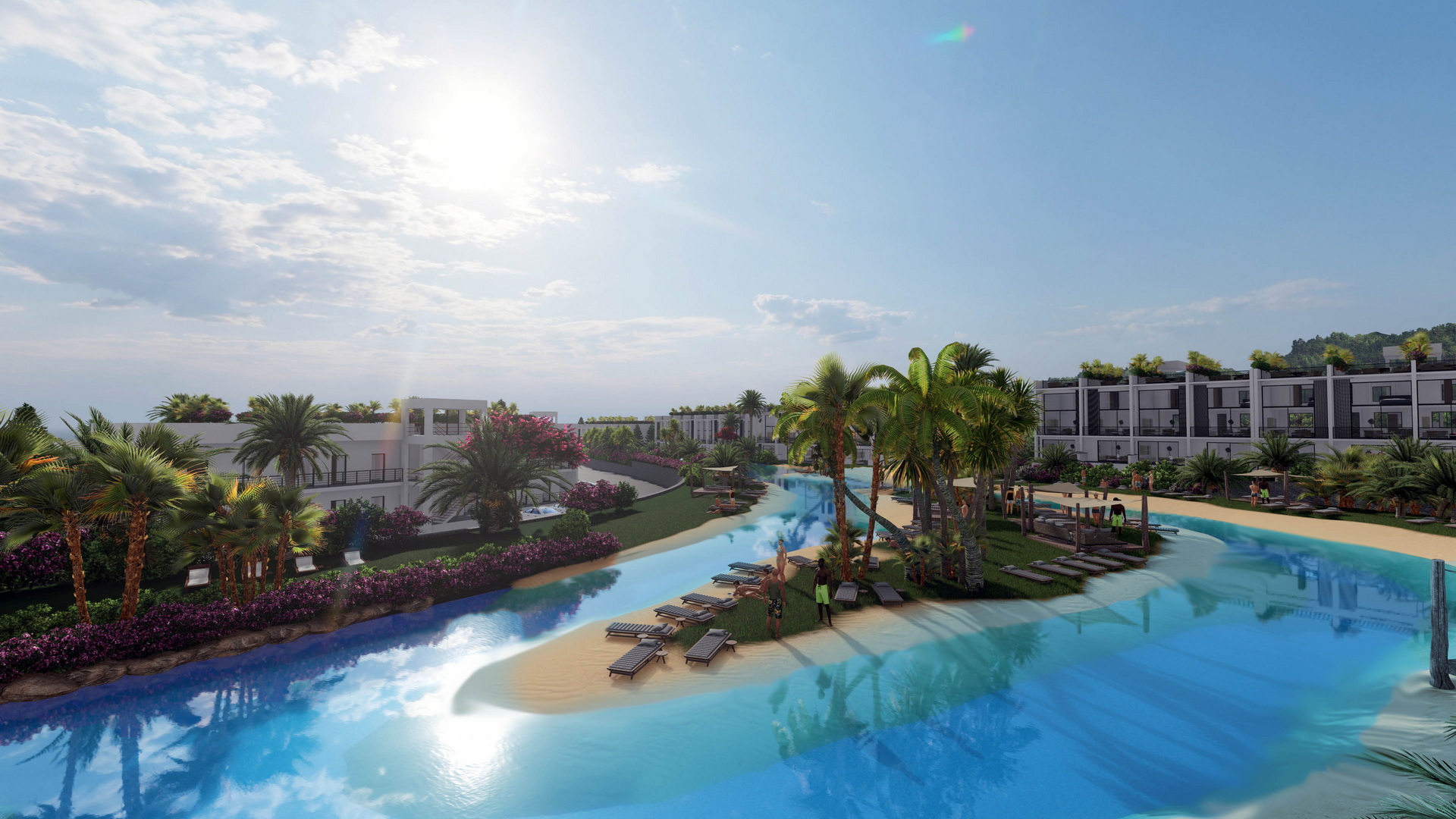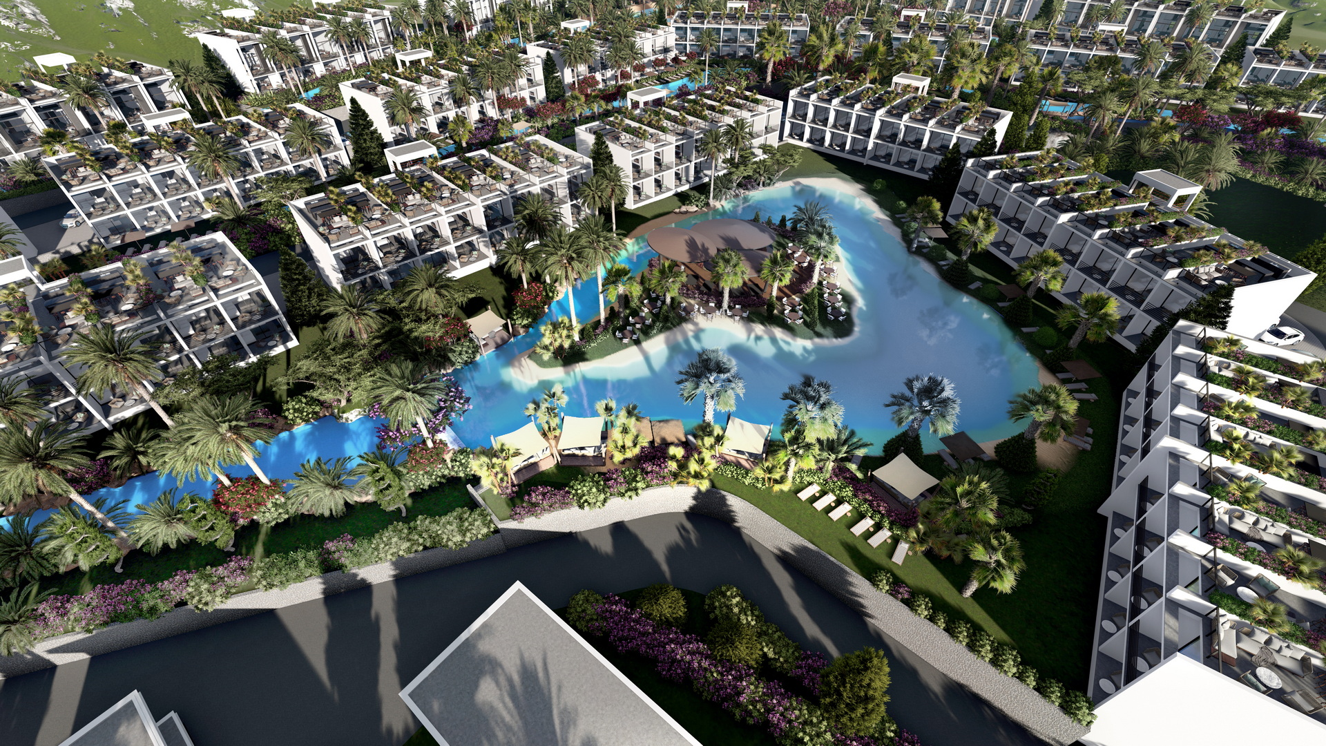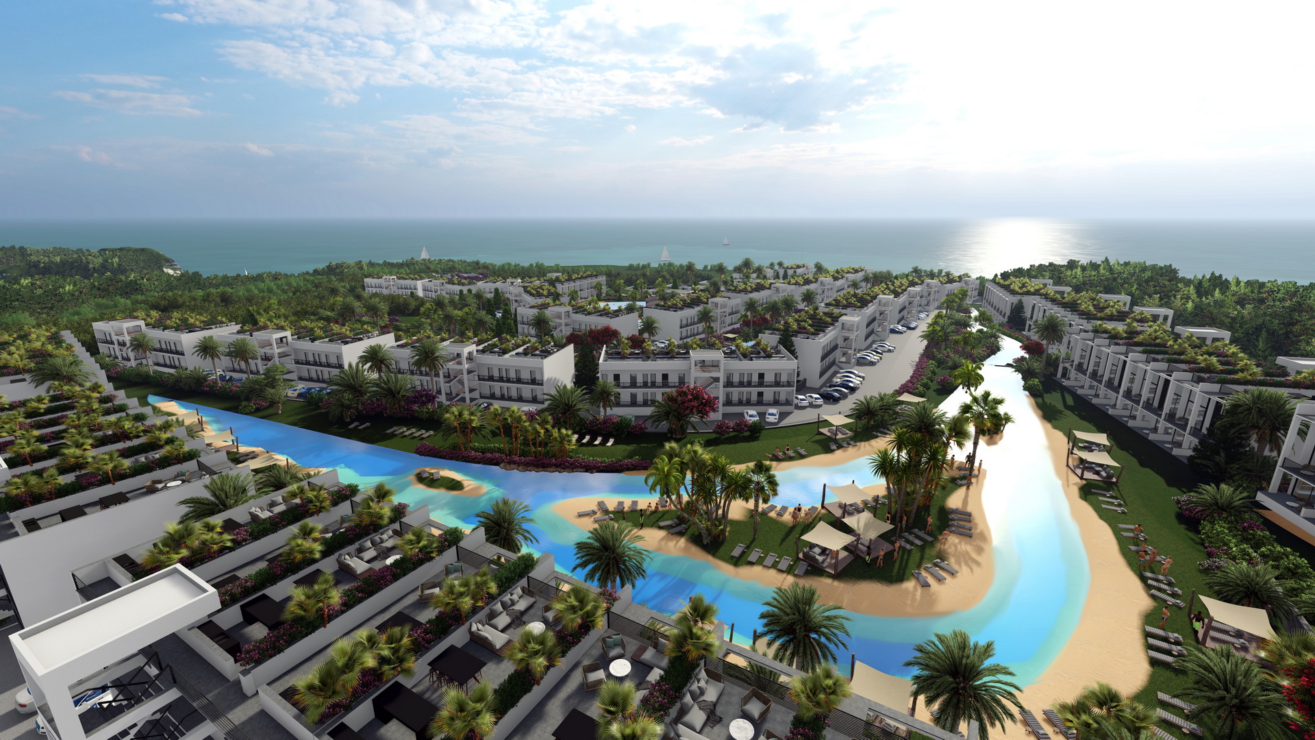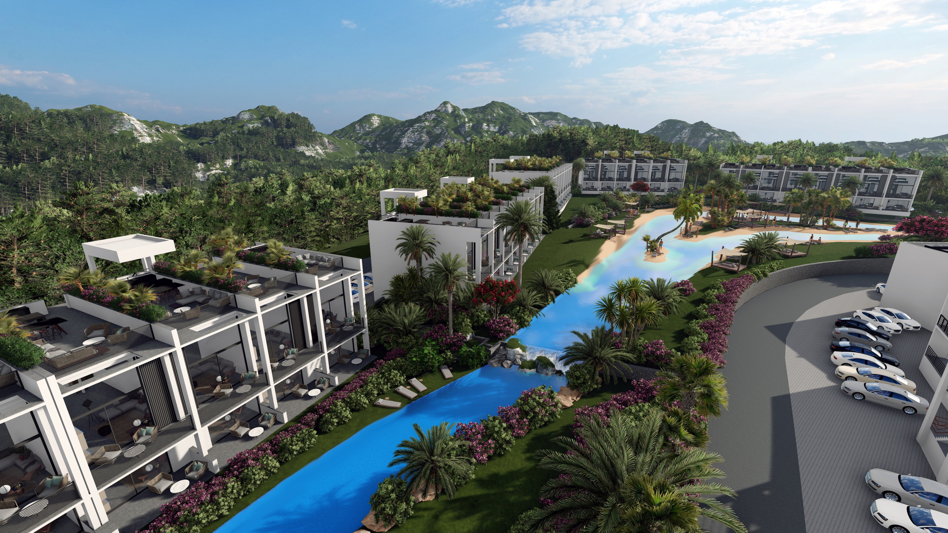 Hawaii Homes is a vast sea side residential project by Cyprus Constructions, featuring 500 units of different types including studios, 1+1 and 2+1 loft penthouses, and 3 bedroom luxury villas. The project is located on the coast of Tatlisu and covers an expansive area with artificial rivers, lakes, and islands along with beautiful garden designs. The facilities available on site include an indoor heated pool, spa center, restaurant, bar, gym, basketball and tennis court. The project is expected to be completed by the end of 2025.