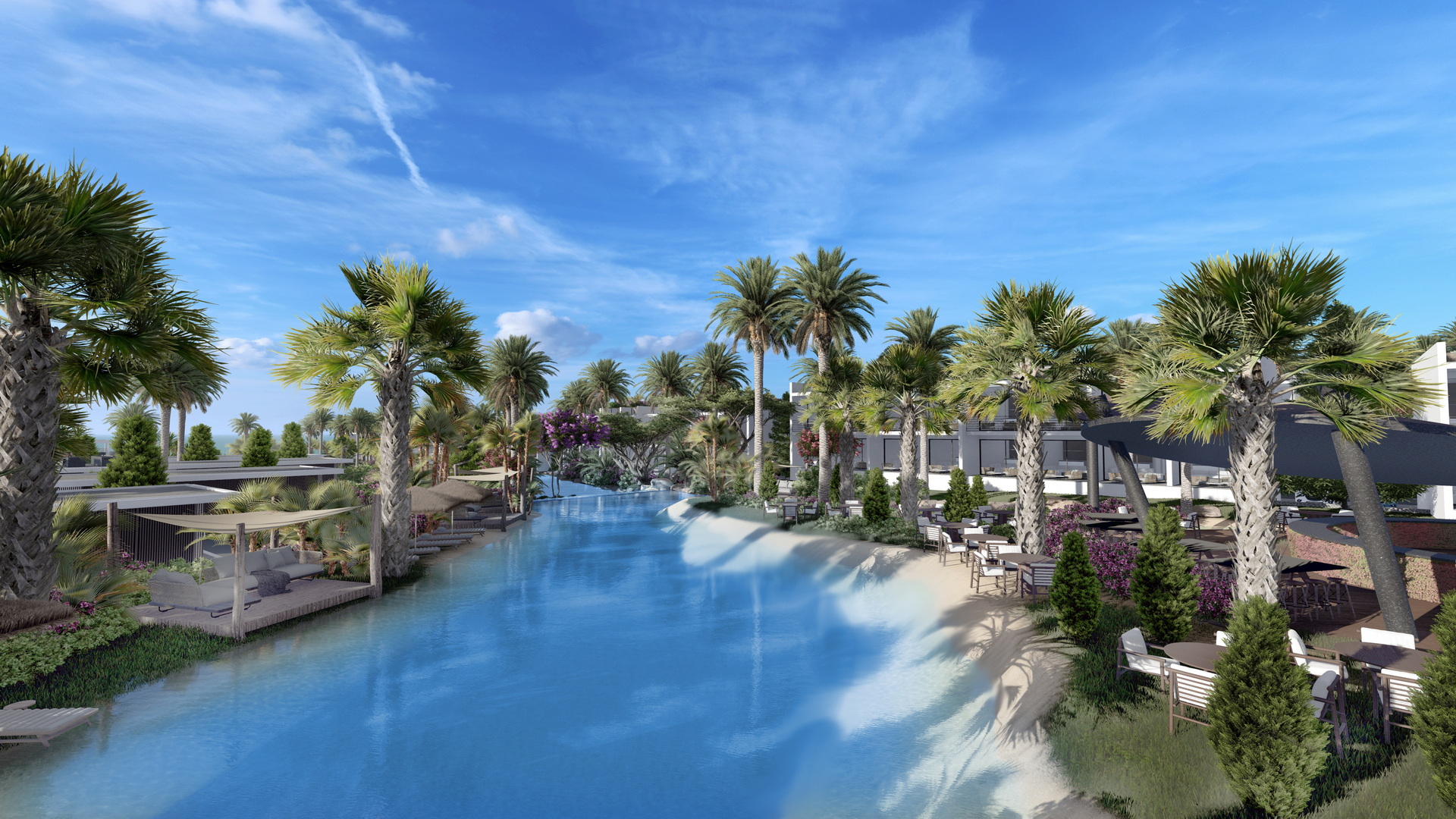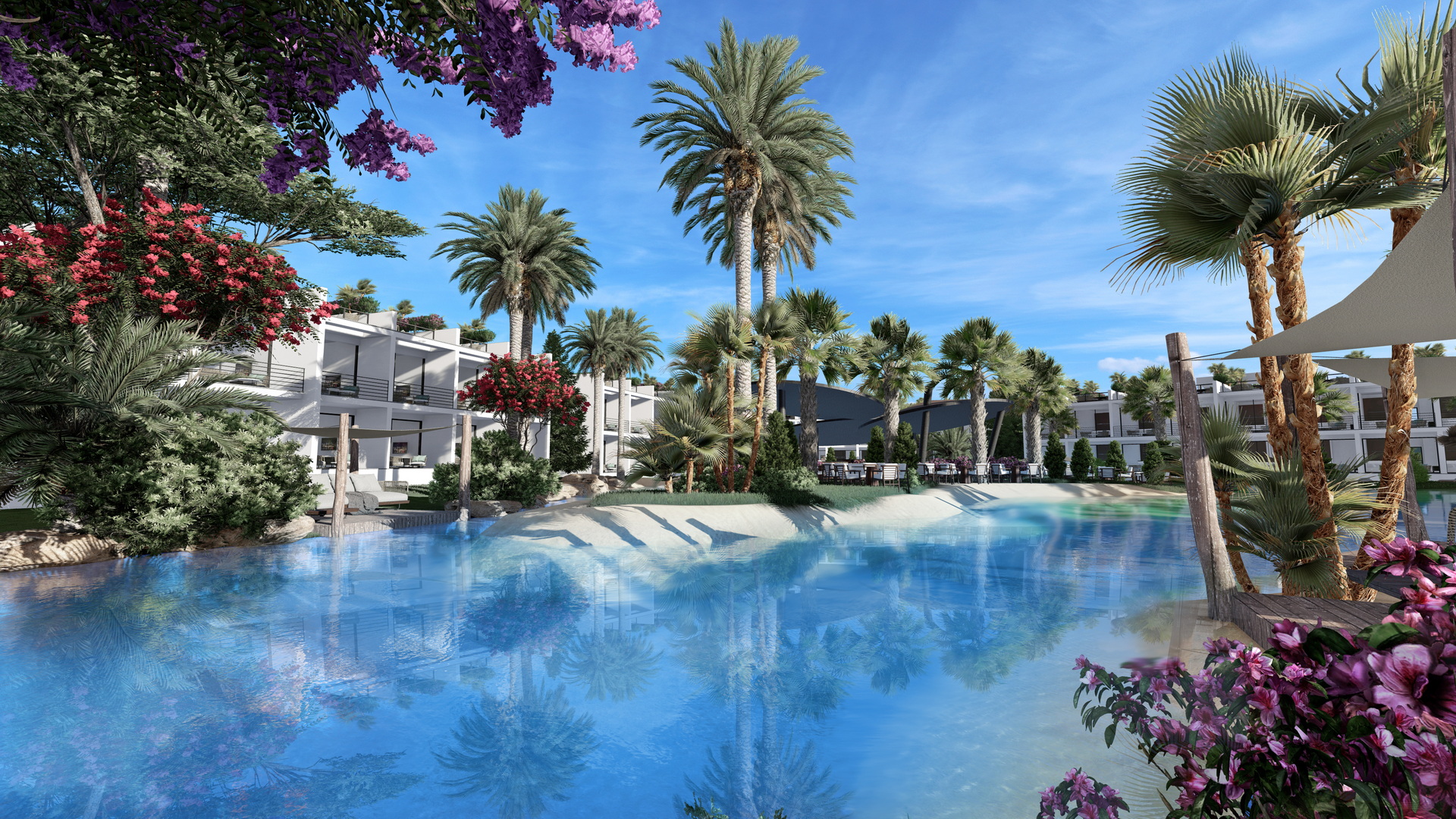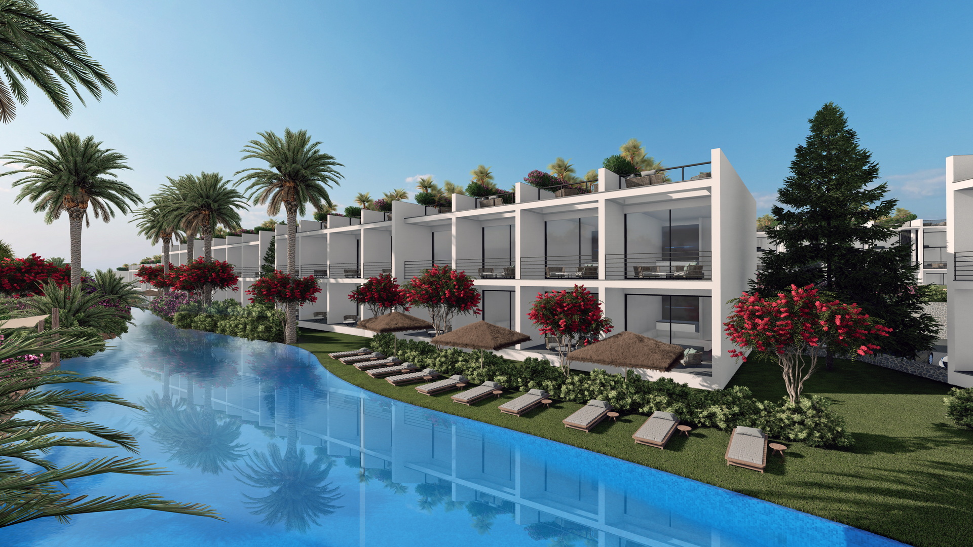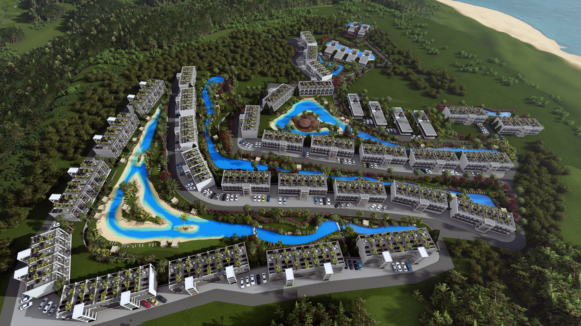 Hawaii Homes is a vast sea side residential project by Cyprus Constructions, featuring 500 units of different types including studios, 1+1 and 2+1 loft penthouses, and 3 bedroom luxury villas. The project is located on the coast of Tatlisu and covers an expansive area with artificial rivers, lakes, and islands along with beautiful garden designs. The facilities available on site include an indoor heated pool, spa center, restaurant, bar, gym, basketball and tennis court. The project is expected to be completed by the end of 2025.