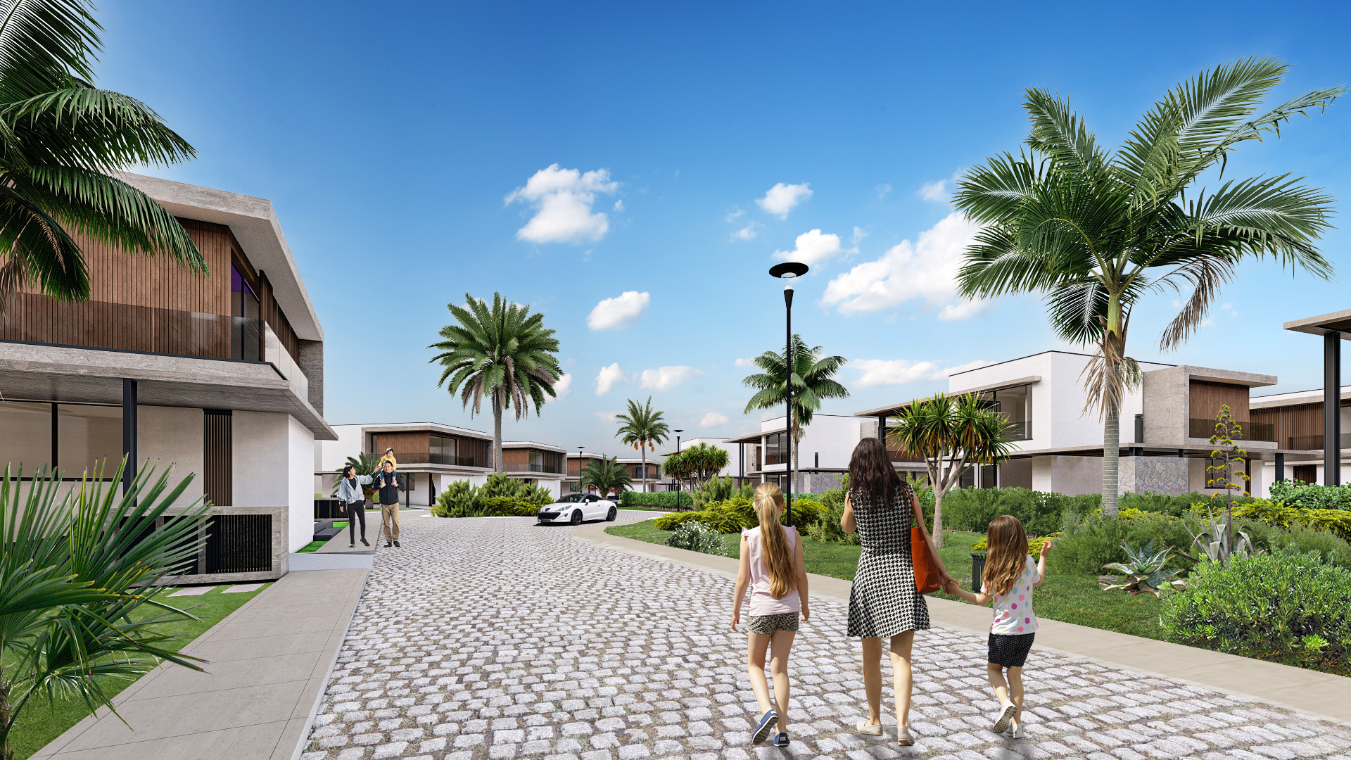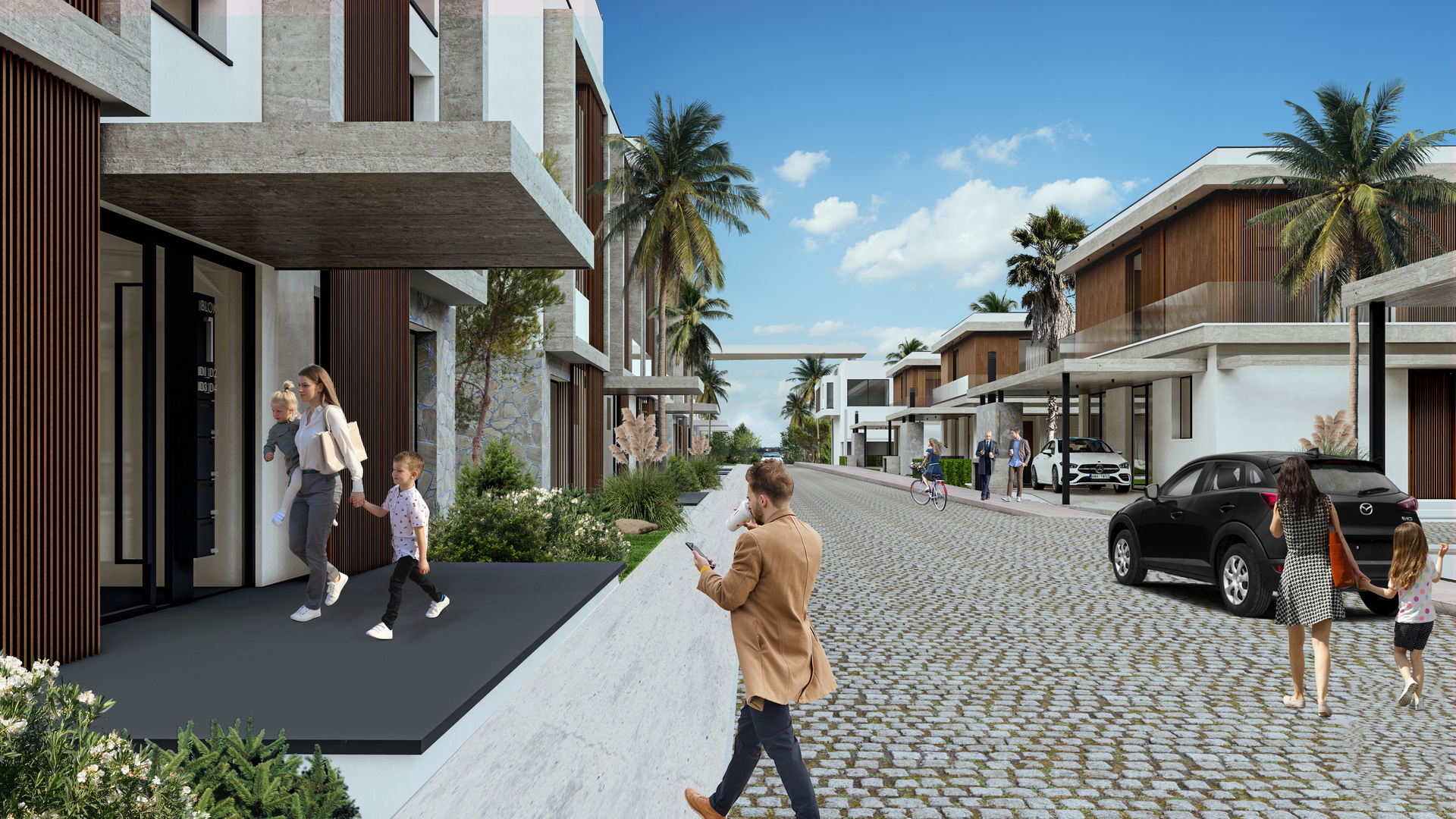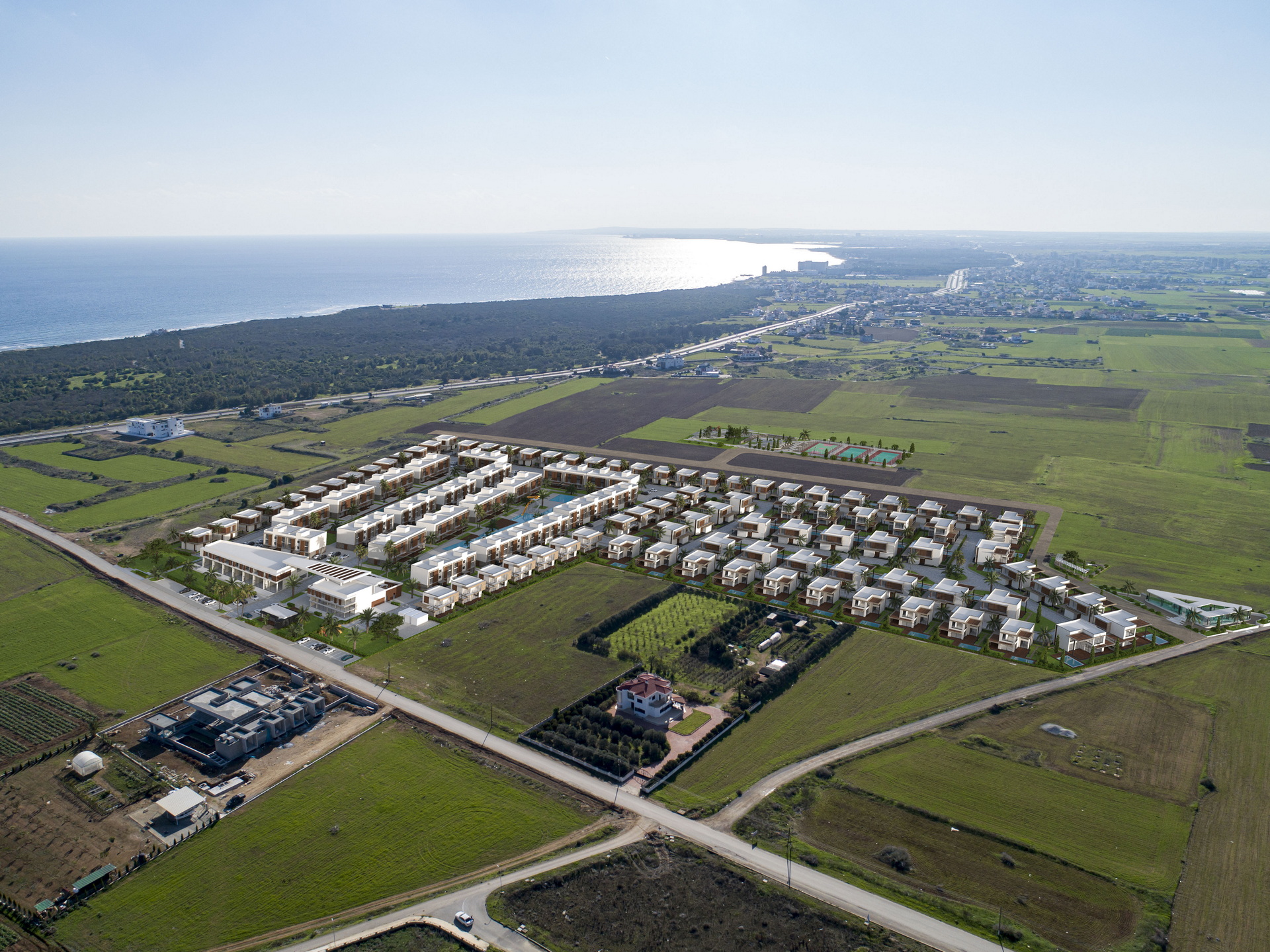 The La Isla Villas project, created by Döveç, embodies the idea of a pleasant and tranquil life on the island in the embrace of nature. This unique complex, comprising more than 200 residences, is located in the easternmost corner of Mesarya: just 400 meters from the lush greenery of Long Beach and 700 meters from the turquoise coast, south of the main Famagusta-Karpaz highway and the road leading to Otyken.