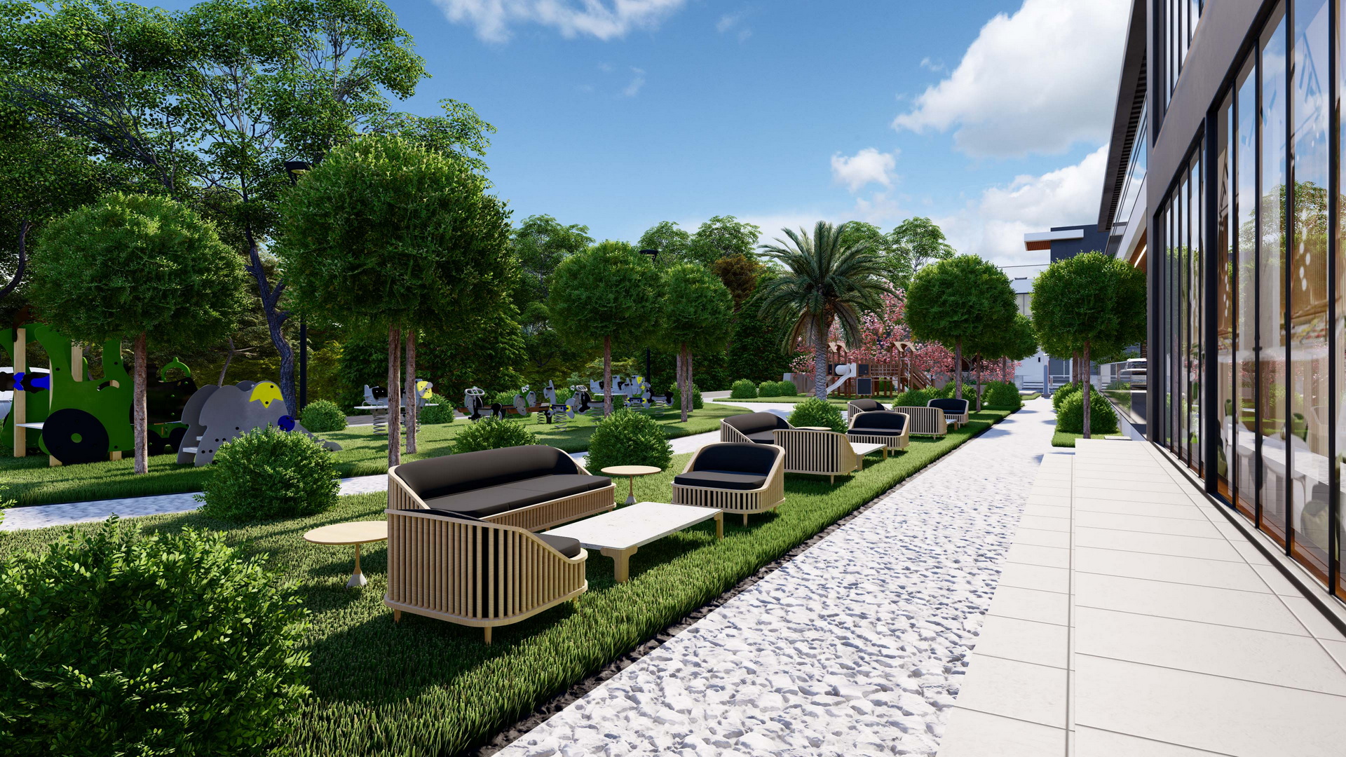 The infrastructure of the complex is designed to meet all your needs and desires, including a minimarket, cafeteria, gym, a 55m x 10m pool, charging station for electric cars, and a controlled site entrance with 24-hour security and barrier system. Moreover, the complex has a security camera system, a park zone with walking areas, a playground, and a kid's pool with slides. It also provides parking places and transfer to the sea.