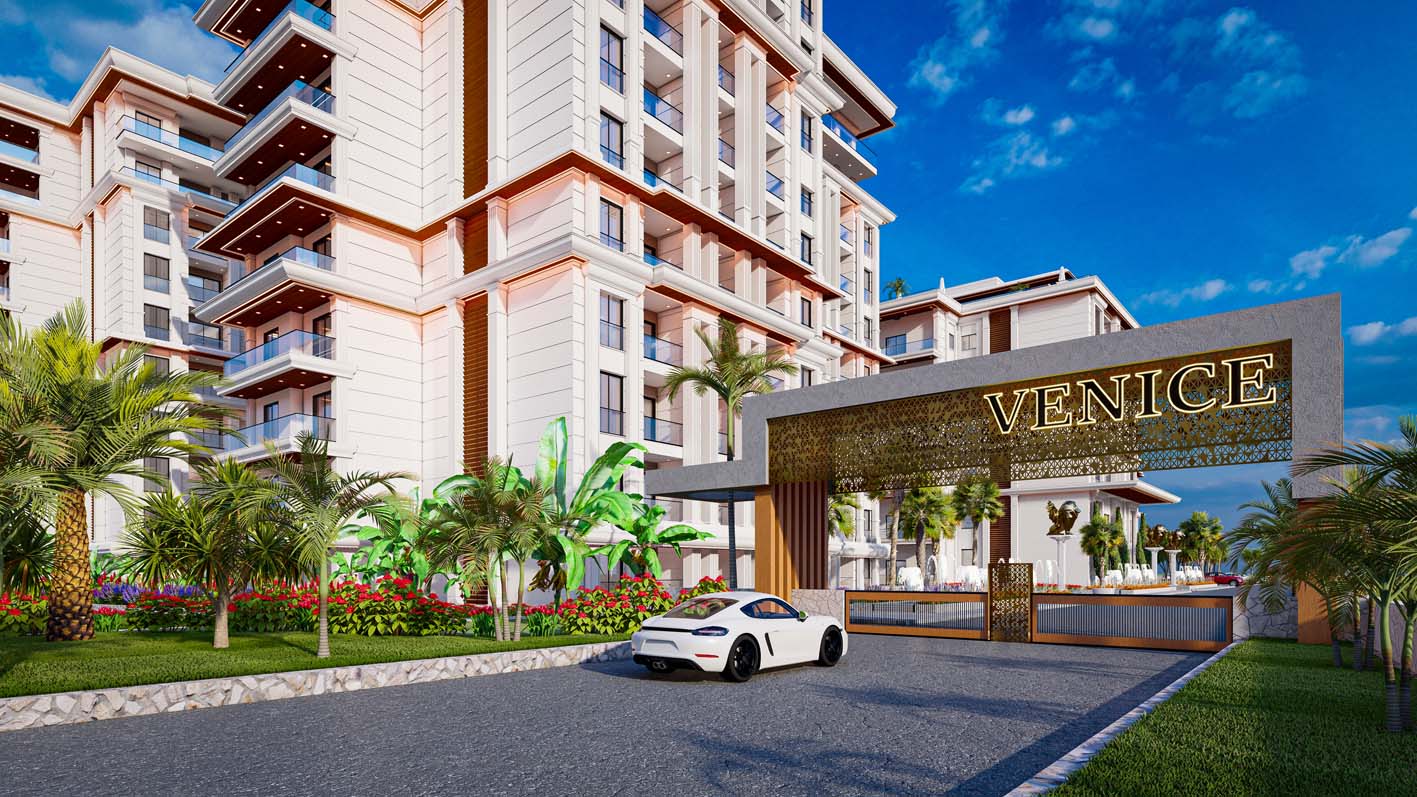 We present a project called "Venice" located in Long Beach, Iskele. In this huge project of 800 apartments, you can enjoy a gondola ride around your house like in Venice. The project includes a 400m long gondola canal, a 500m2 swimming pool, a children's pool, an indoor pool, a SPA center, a gym, a basketball court, an aqua park, massage rooms, a sauna, a Turkish bath, 5 restaurants of different concepts, a rooftop bar , shopping mall, amphitheater, outdoor and indoor parking and many other possibilities.