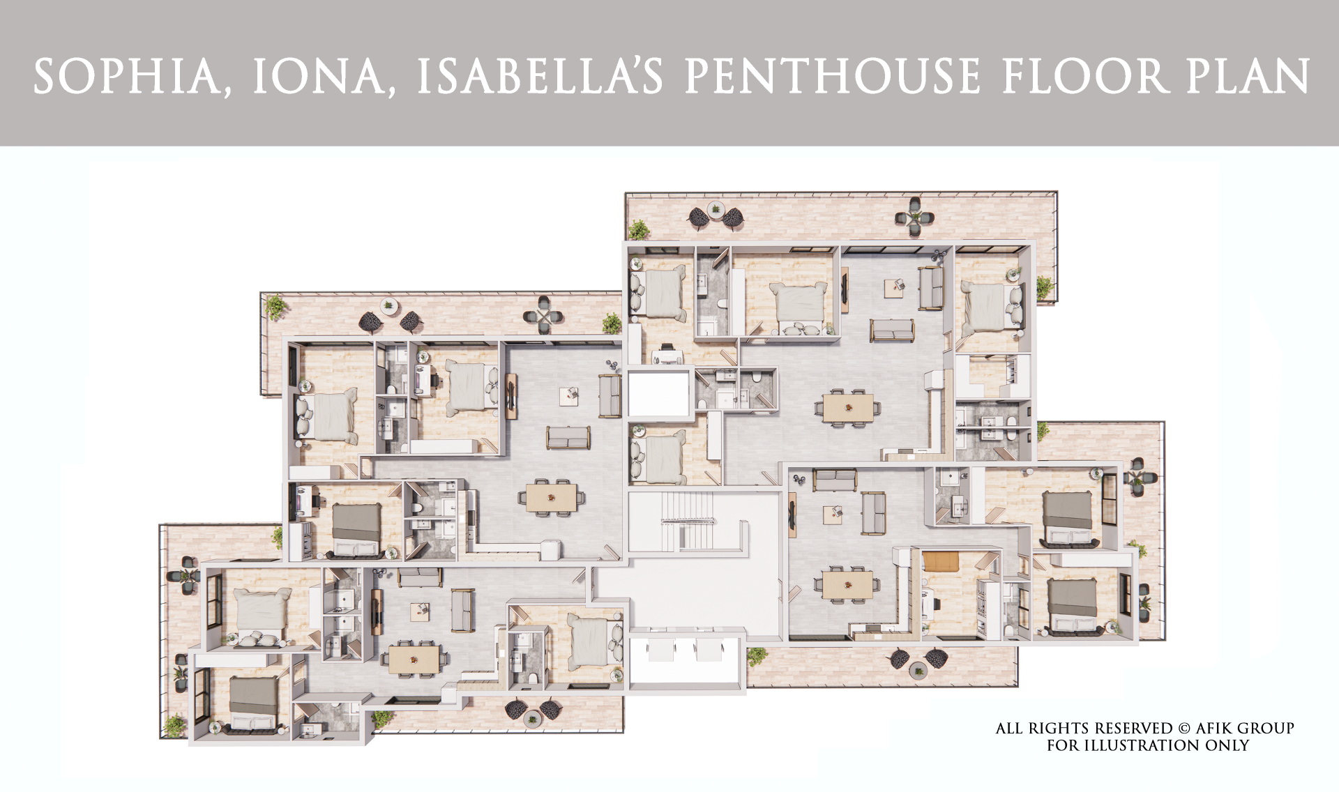Caesar Blue 3+1 Penthouse Apartments offer you the opportunity to enjoy a level of comfort and luxury you deserve, surrounded by the beauty of nature and the magnificent sea breeze. Welcome to this wonderful place where every day brings joy and satisfaction.