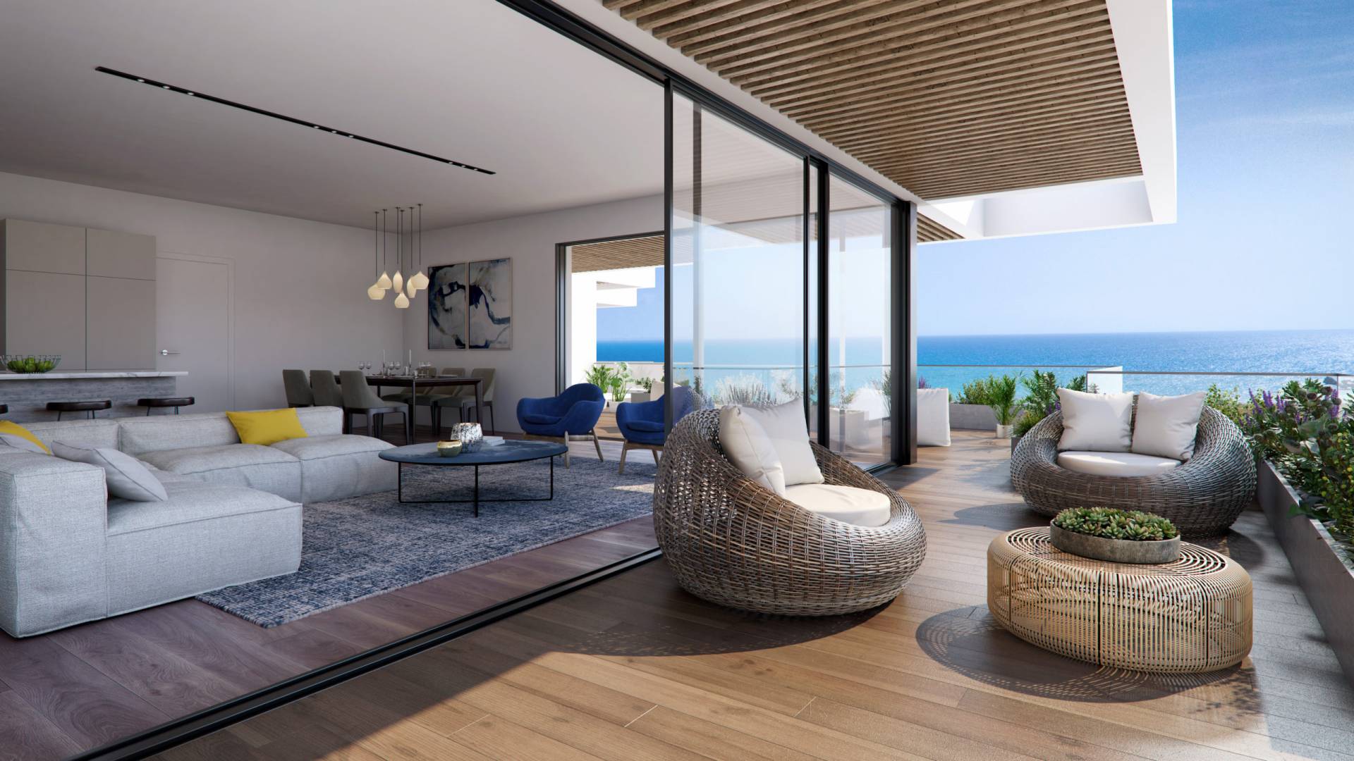 This penthouse provides outstanding living space with three bedrooms and a generous covered gross area of 100 m². Additionally, you can relish the fresh air and natural views on the extensive balcony, with a total area of 38.9 m². It's the perfect place for those seeking luxurious seaside living with spacious interiors and breathtaking outdoor spaces.