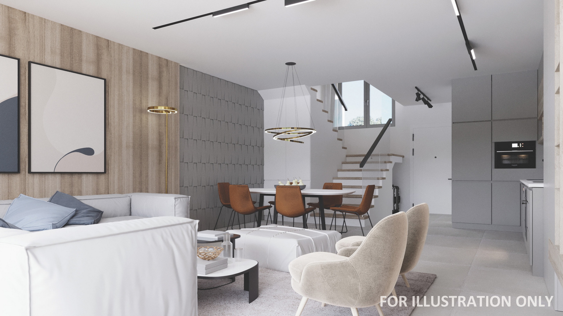 On the ground floor, you'll find a balcony of 13.5 sq. m., where you can enjoy your morning coffee or have pleasant evening gatherings with friends or family. The 1st-floor balcony of 6 sq. m. also offers stunning views of the surrounding area, perfect for relaxation in a peaceful atmosphere.