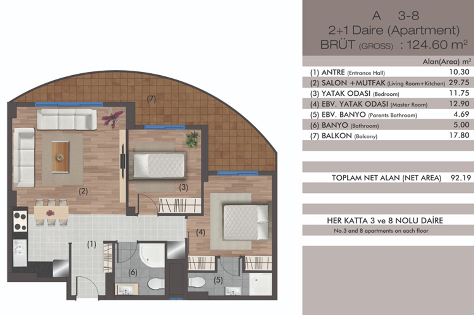 Welcome to Edelweiss Residence, a luxury apartment hotel located on the seafront! We present to your attention a spacious 2 + 1 apartment, which will become a real refuge for you and your family. The total area of the apartment is 132.50 m², and the net area is 98.03 m², where you can enjoy comfort and luxury.