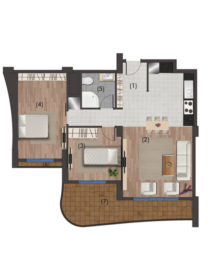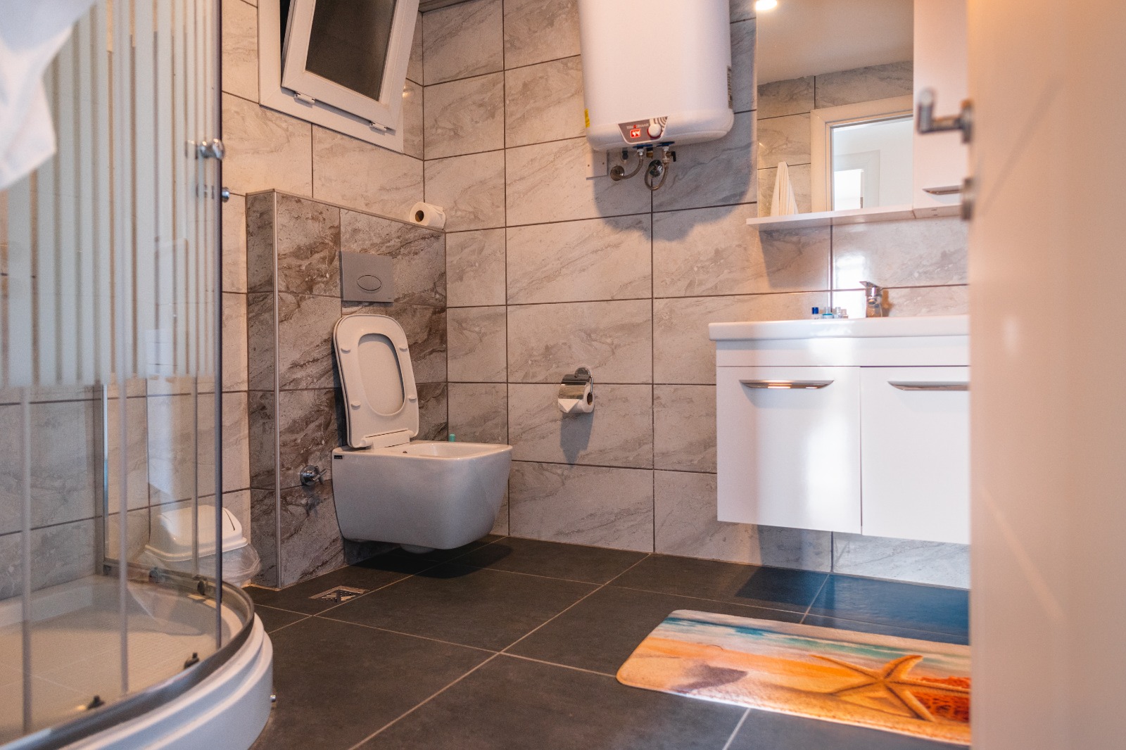 The apartment has two bedrooms, one of which is the parent's with its own bathroom, as well as a spacious living room with a kitchen area of 33.21 m², which will become the center of your cozy space. From the living room there is access to a balcony of 15.07 m², where you can enjoy beautiful views of the sea and mountains. In addition to the apartment, there is another balcony with an area of 0.92 m², where you can spend time with your loved ones or just relax with a book and a cup of coffee.