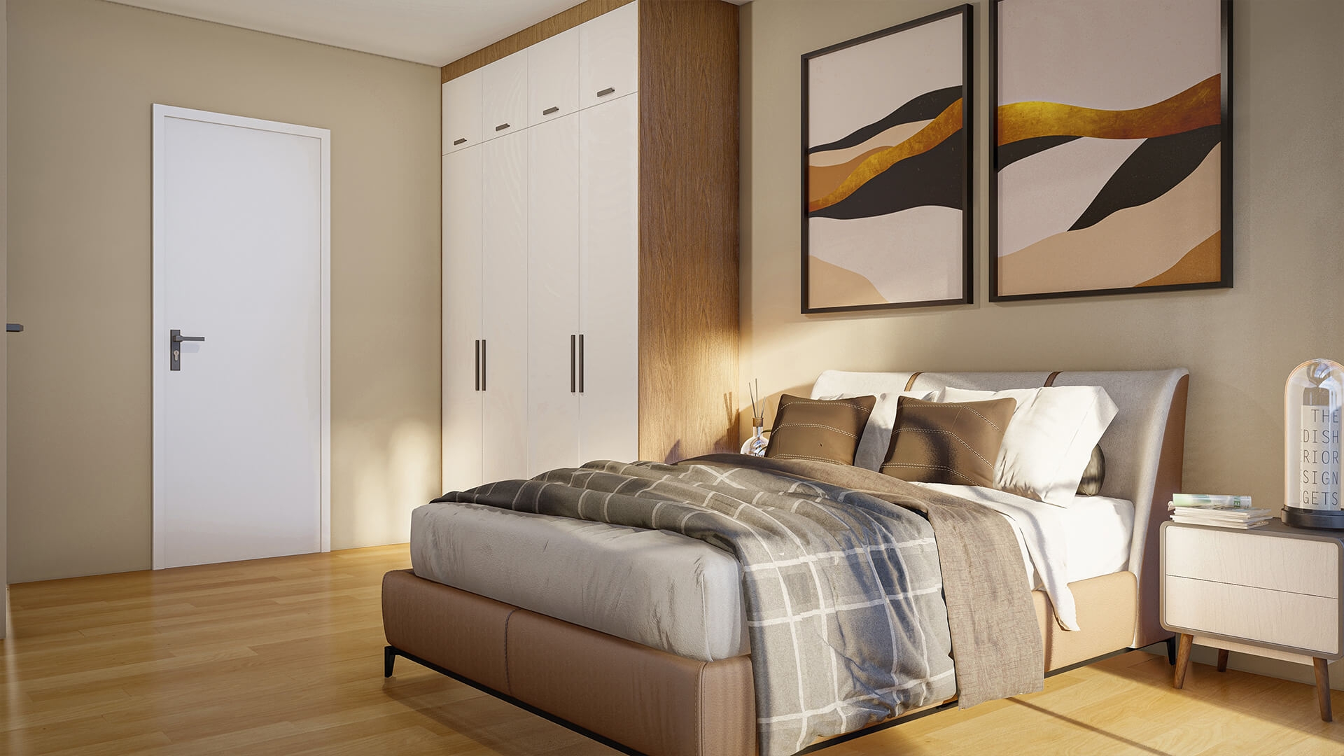 The delightful 18 square meter master bedroom transforms into the perfect place to unwind and unwind. Here you can enjoy a cozy atmosphere, comfort and luxury.