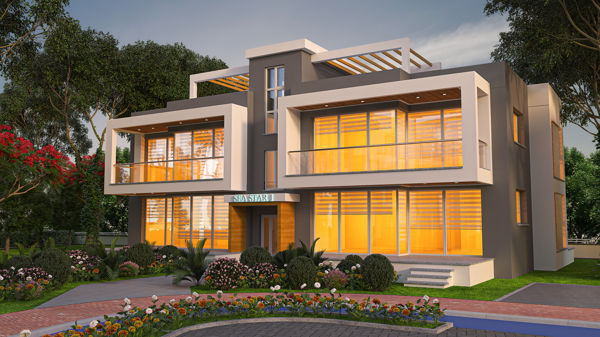 Sea Star block also has two types of 2+1 apartments. The first type comes with a garden and a terrace measuring 38m², while the second type has a roof terrace measuring 75m². Both types have a total area of 75m², one bathroom, two bedrooms, a living room with a kitchen, and one parking spot. The apartments are sold without furniture.
