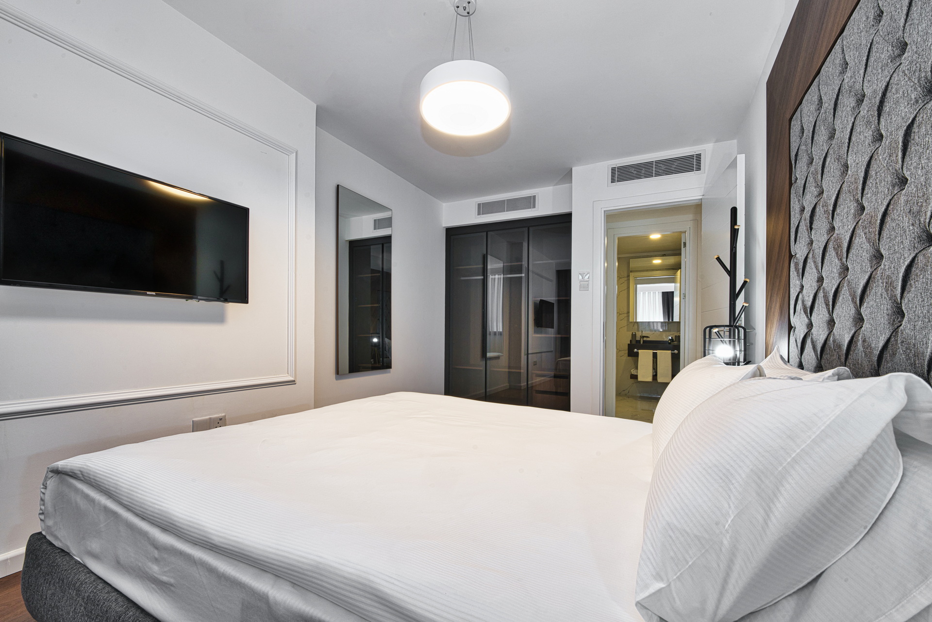 Additionally, this apartment provides several household utensils, including bed linen, towels, pillows, a set of toiletries, a clothes dryer, laundry basket, and a clothes hanger. You can also add a personal touch to the place with the help of decorative accessories.