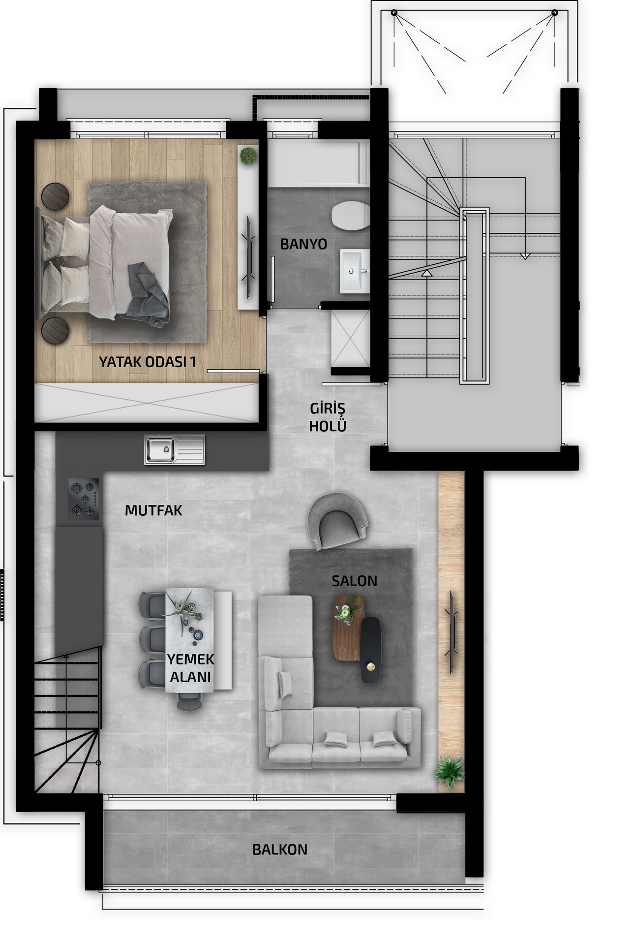 Immerse yourself in the refined lifestyle offered by La Isla Villas with our captivating 2+1 duplex apartment, available for sale. This thoughtfully designed home combines modern comfort with the tranquility of island living.
