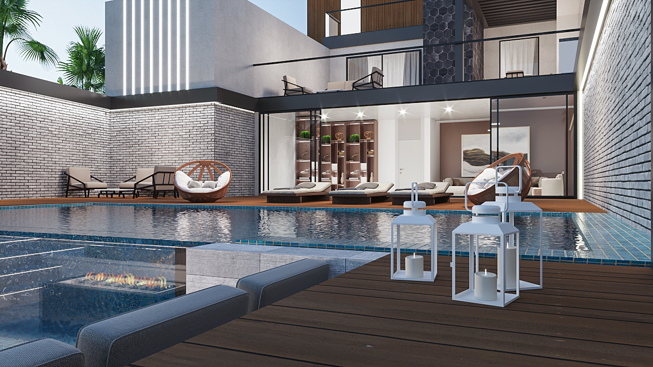 The interior of Larmes Villa Diamond Plus represents a harmonious combination of style and comfort. Spacious living spaces are designed for both relaxation and entertainment. The open-plan living and dining room are the central elements of the villa, furnished with luxurious furniture and equipped with the latest technologies to create an atmosphere of relaxation. The villa's bedrooms are a true corner of peace and tranquility, with soft lighting and a calming view of the cityscape. The bathrooms are also minimalist in design and offer spa amenities.