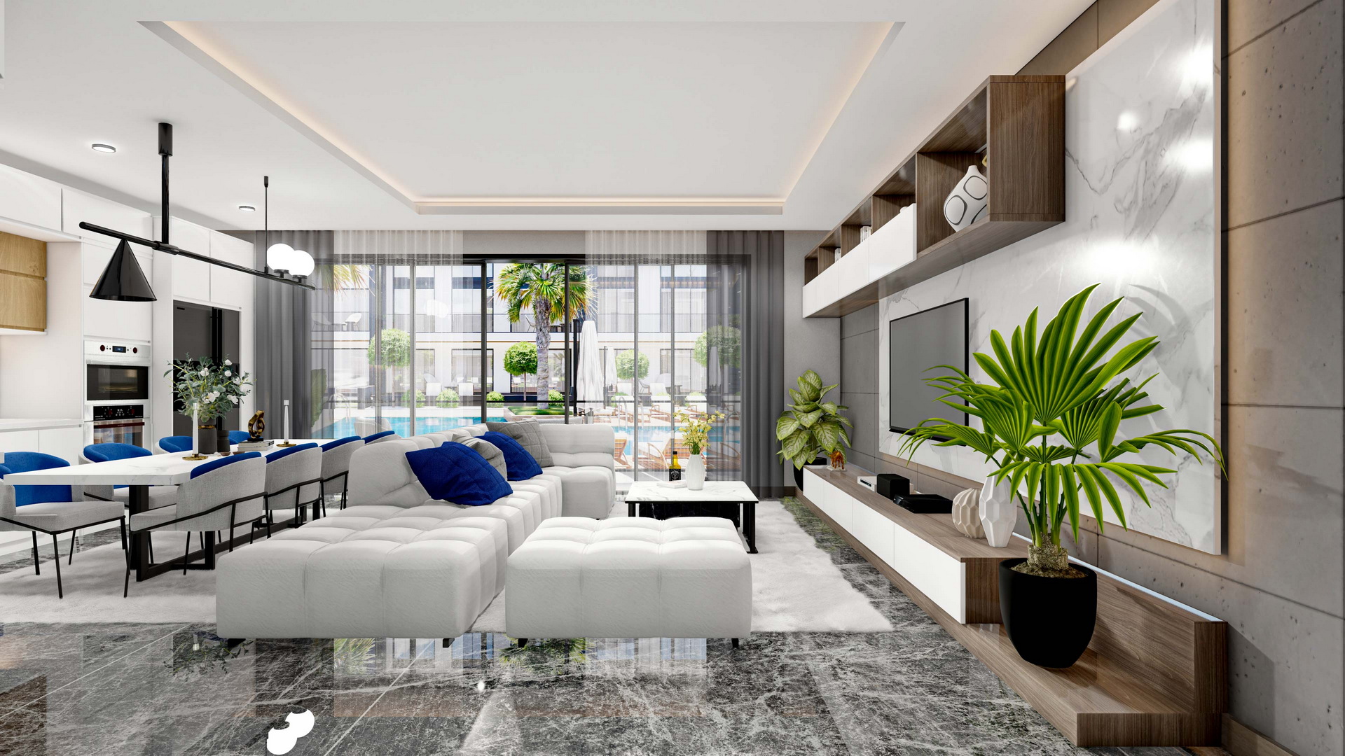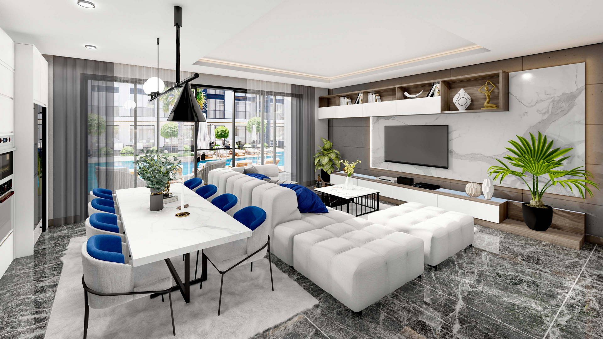 The apartment has a net area of 126 square meters, a balcony of 30 square meters, and a plot of land of 12 square meters, providing ample space for you and your family to enjoy. One of the best features of this apartment is its beautiful pool view, which will add a touch of tranquility to your daily life.