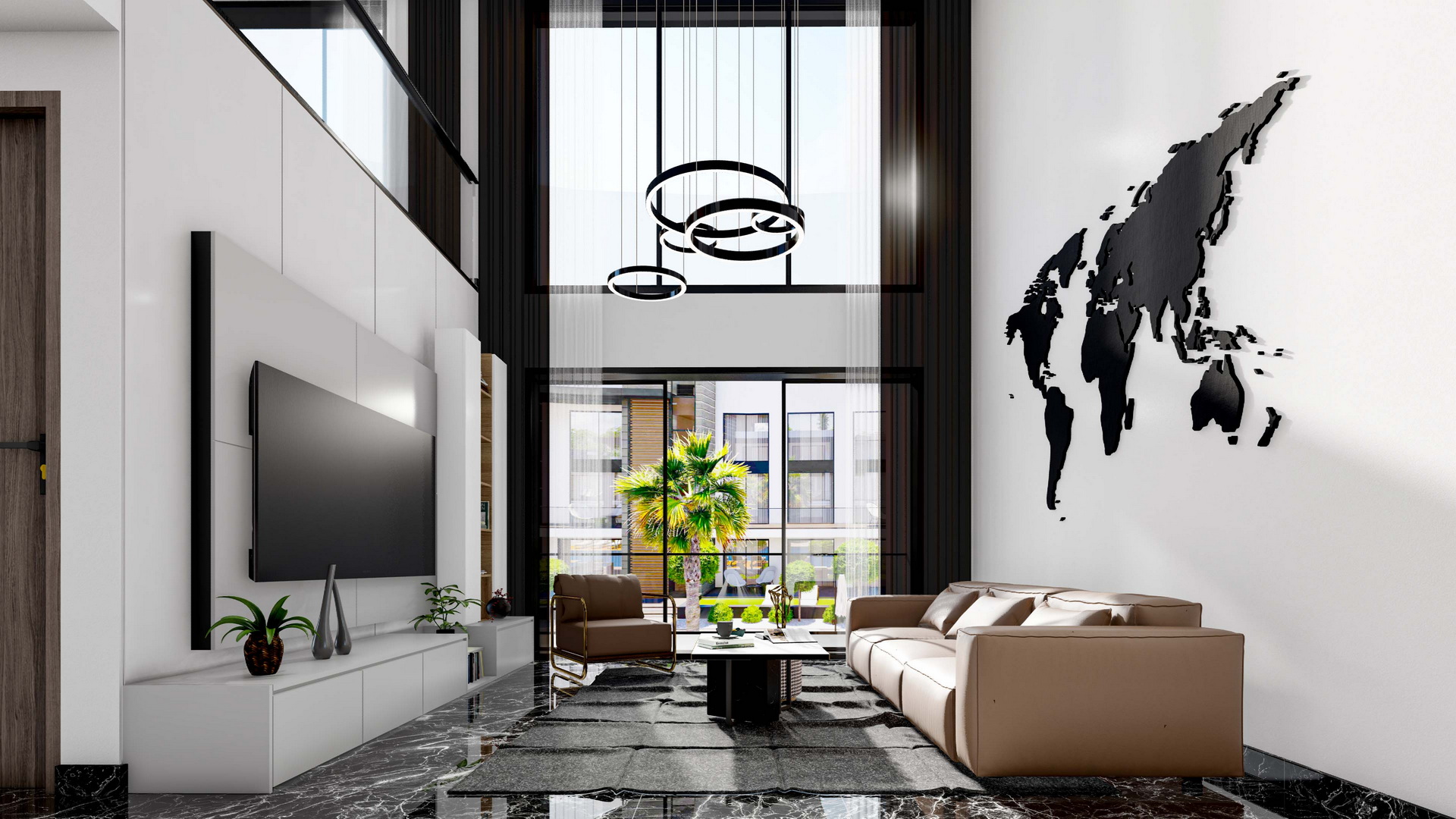 With large windows and a creative interior design, this loft apartment offers a gorgeous view of the infrastructure of the complex, which will give you unforgettable emotions. This apartment is perfect for those who appreciate modern and innovative living spaces.