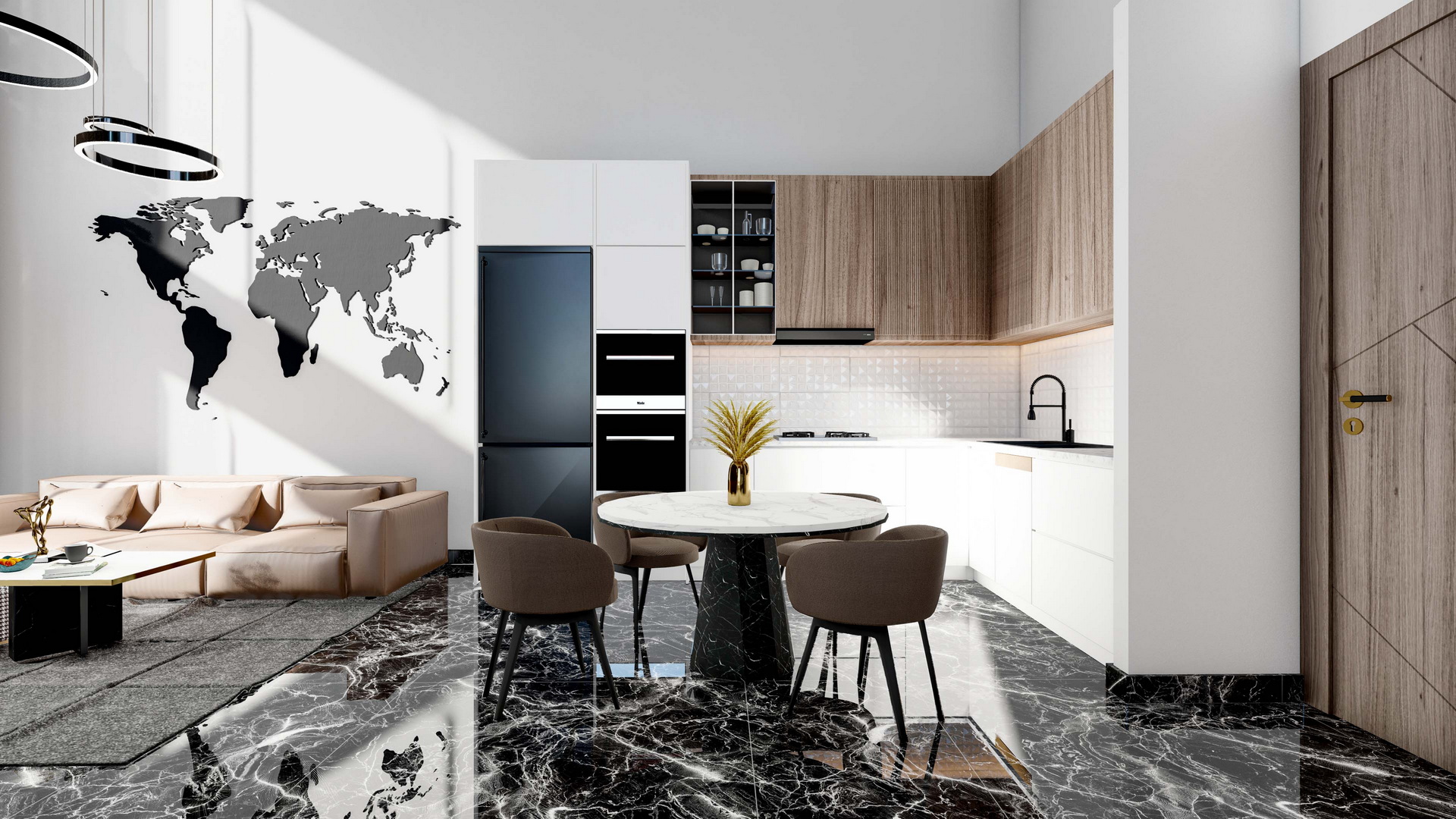 If you're looking for a spacious and high-quality loft apartment with a beautiful pool view, then we are excited to present Apartment A-12 to you! This apartment follows the main style rule of minimal use of internal walls and partitions, creating a spacious and open living environment.