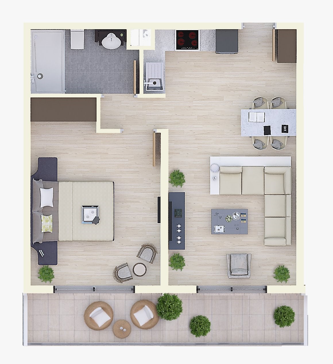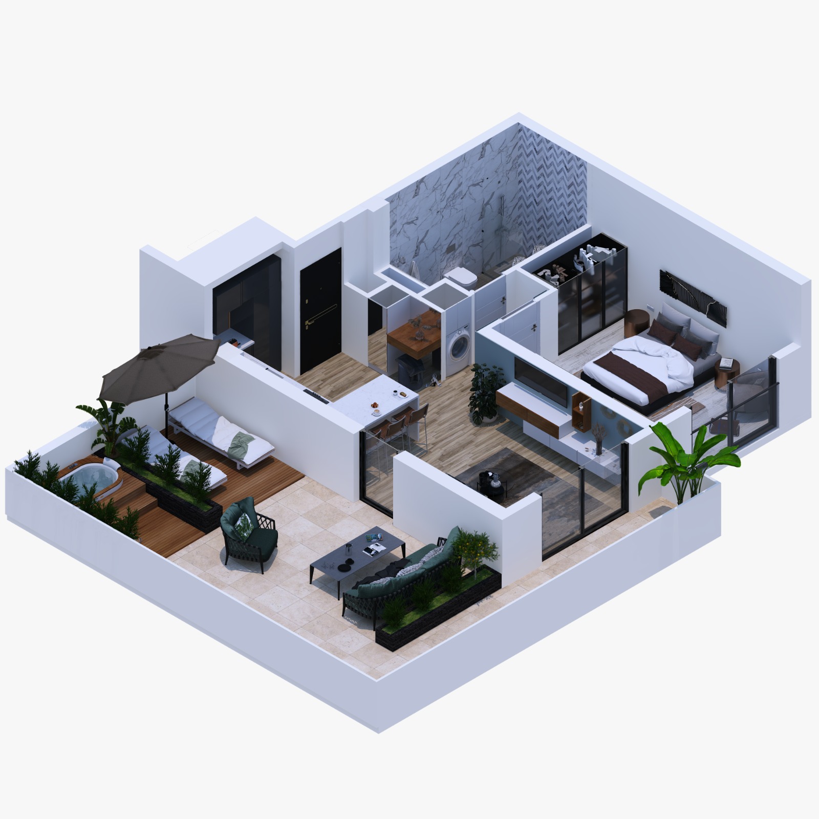 The spacious living room combined with the kitchen creates a cozy atmosphere for family recreation and entertainment. At the same time, the bedroom has everything you need for privacy and relaxation, so that everyone can enjoy the impressions of the sea breeze and the beauty of the sunset. And thanks to the 11 square meter balcony, you can enjoy beautiful sea views at any time of the day.
