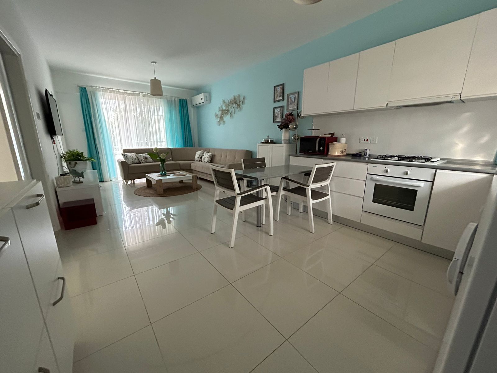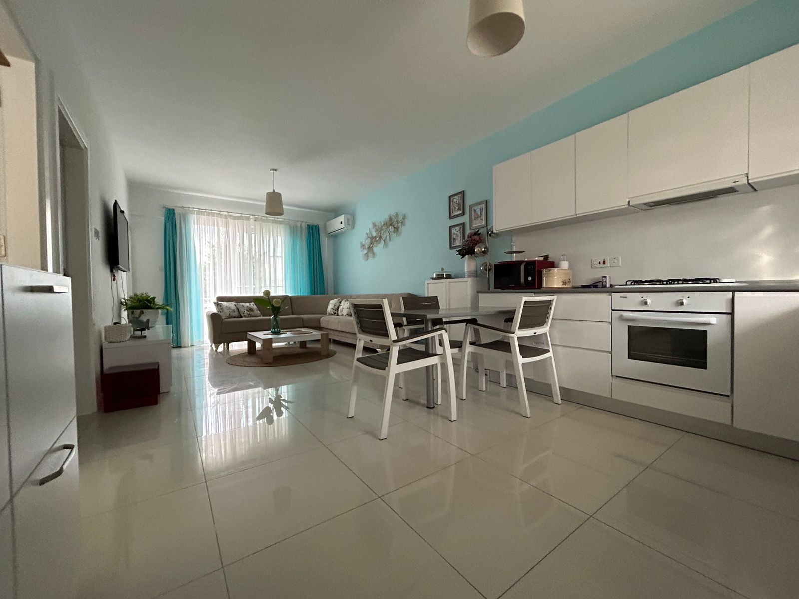 Apartments for rent 2+1, ground floor, 2 bathrooms, area 68 m2, terrace 30 m2, 5 meters to the pool, 50 meters to the beach. The apartment is fully equipped with furniture, appliances and is completely ready for living.